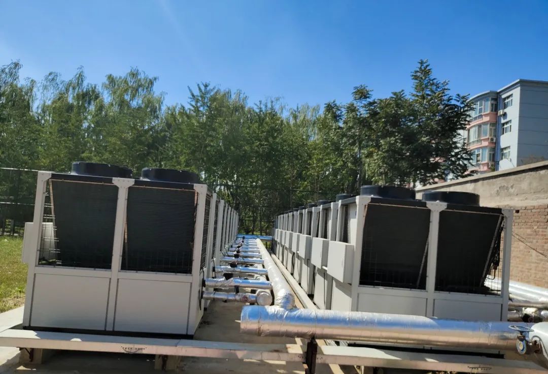 天舒經(jīng)實地調(diào)查后進(jìn)行方案設(shè)計,夏季空調(diào)系統(tǒng)冷負(fù)荷1162.8KW,冬季空調(diào)系統(tǒng)熱負(fù)荷930.24KW,選用20臺25匹超低溫空氣源風(fēng)冷熱泵機(jī)組,單臺制冷量65kW,總制冷量1300kW,滿足冬夏冷暖需求,單臺-12℃制熱量53KW ,總制熱量1060KW,滿足冬季采暖要求。