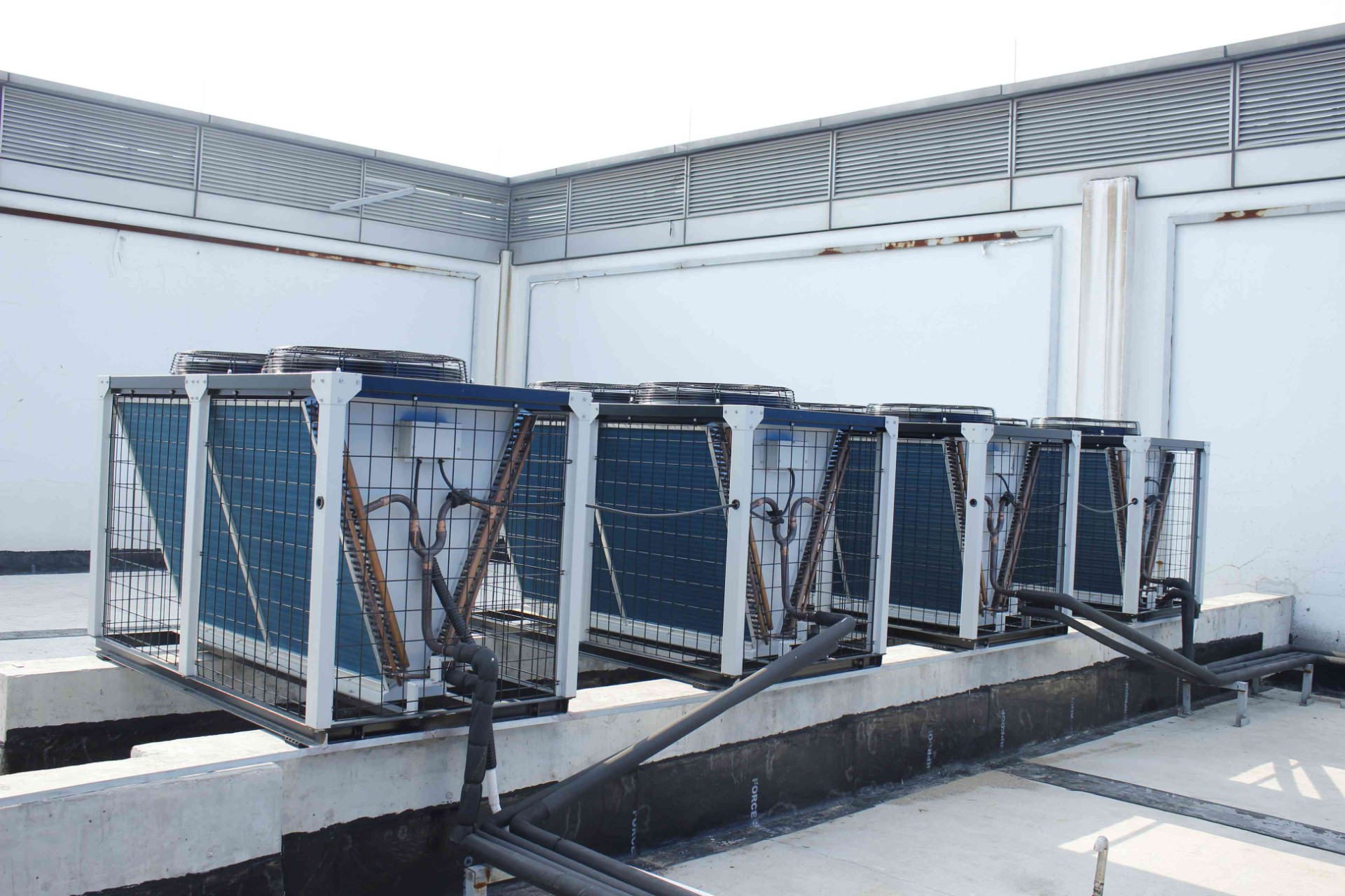 館內(nèi)泳池長(zhǎng)50米,寬25米,平均深度1.65米,采用天舒泳池除濕恒溫系統(tǒng)滿足泳池恒溫、室內(nèi)恒溫恒濕需求。采用3臺(tái)天舒熱能五集一體泳池除濕恒溫?zé)岜靡约?臺(tái)天舒熱能空氣源熱泵機(jī)組組成一個(gè)室內(nèi)泳池系統(tǒng)能源解決方案來滿足泳池四季恒溫恒濕、館內(nèi)春秋季全新風(fēng)、冬季采暖、夏季制冷、24小時(shí)淋浴熱水的需求。3臺(tái)泳池除濕恒溫?zé)岜煤?臺(tái)空氣源熱泵機(jī)組聯(lián)合控制,連接成一個(gè)整體,綜合利用,有力保證了系統(tǒng)的高效節(jié)能,降低運(yùn)行費(fèi)用。