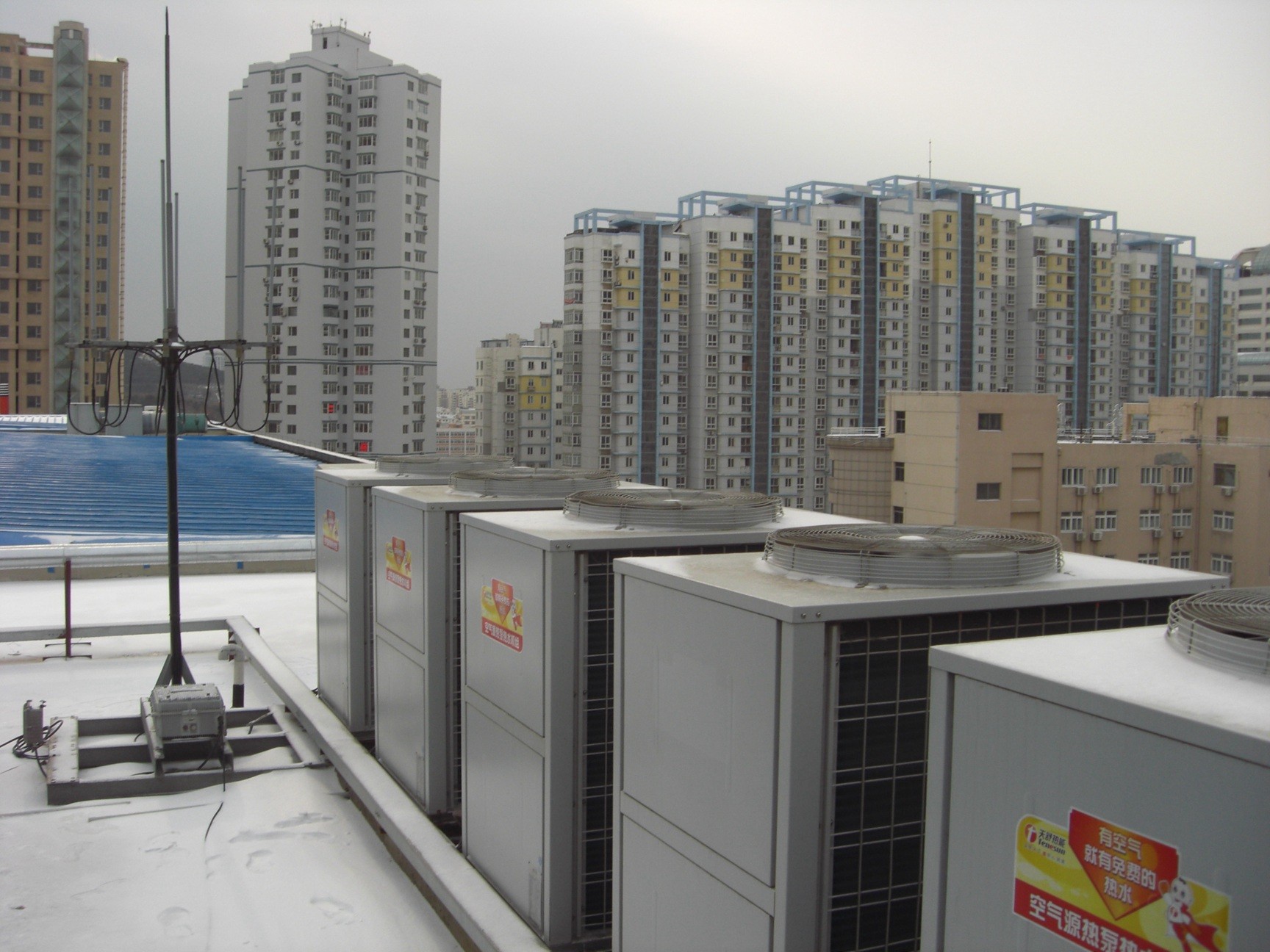 韋德伍斯浩沙健身會所位于美麗的海濱城市——大連。該會所坐落于大連市開發(fā)區(qū)。選用5臺天舒低溫型空氣源熱泵機組。每天制取50T熱水。針對大連地區(qū)冬季的嚴寒程度,將50T保溫水箱放置在室內(nèi),將天舒空氣源熱泵熱水機組放置在樓頂。最大限度保證了冬季的熱水保溫效果。采用變頻恒溫恒壓的供水方式使每個參加健身的客戶都能充分享受到沐浴所帶來的快感!同時最大限度降低了該會所的經(jīng)營成本。