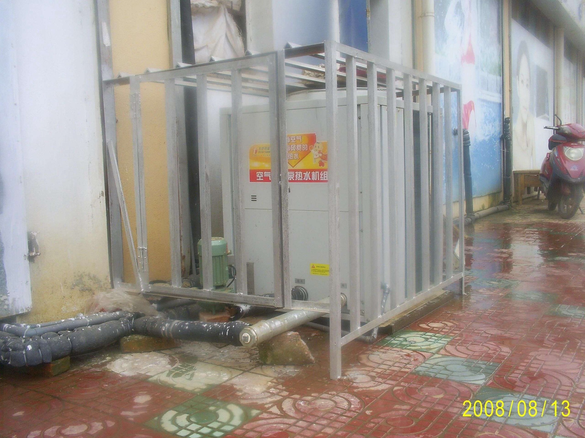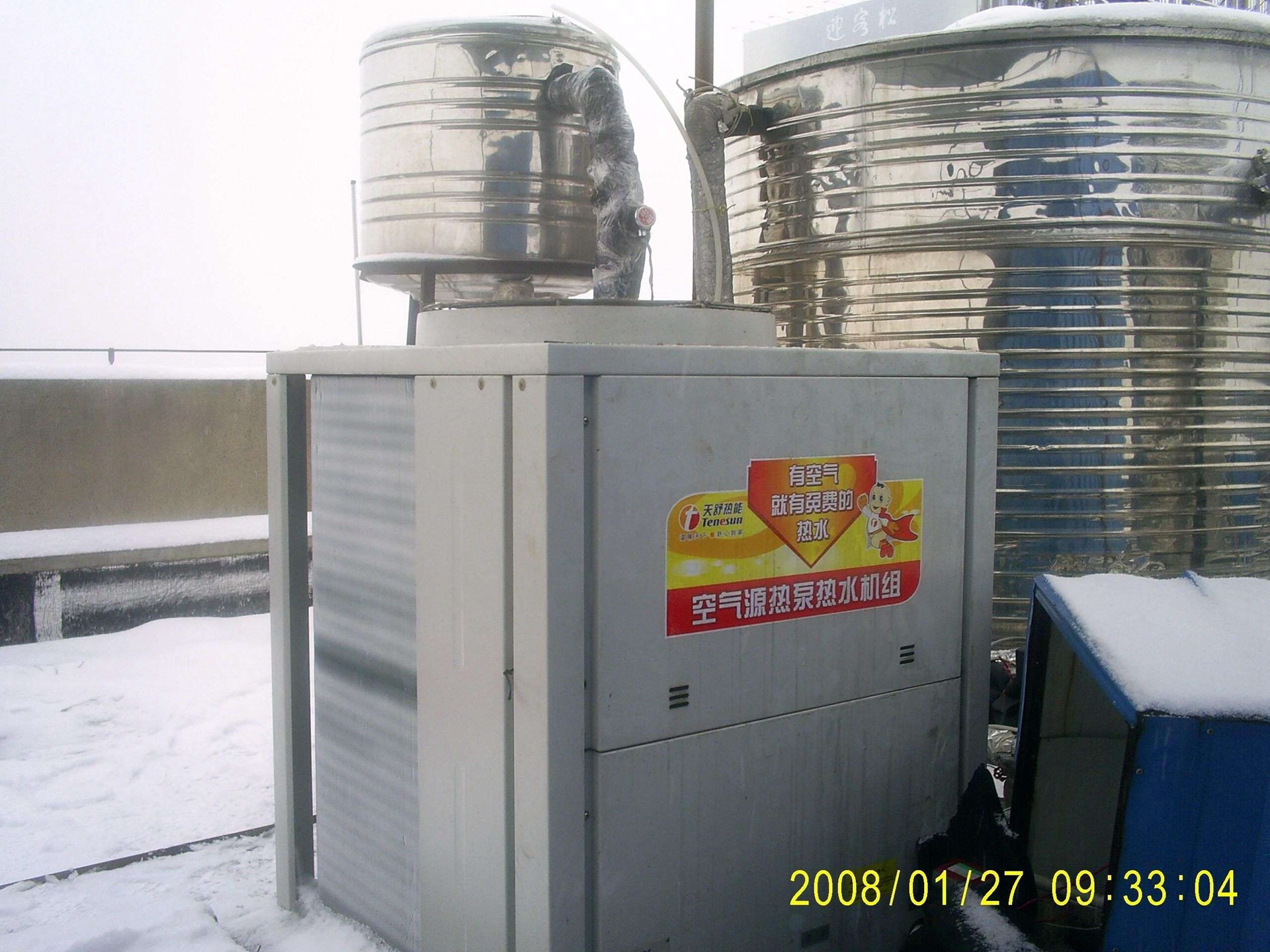 工程為宣城市COCO假日酒店熱泵熱水工程,日用熱水量為40噸,采用了天舒熱能空氣源熱泵熱水機組,工程采用了空氣源熱泵與水源熱泵整體搭配,完美地詮釋了熱泵熱水器制取熱水的超然優(yōu)勢。在春夏秋季節(jié),充分利用空氣源熱泵的極高的COP,以極低的成本制取熱水;在冬季,又彌補了空氣源熱泵能效不足的缺點,此時利用空氣源熱泵將熱水升至38℃,再利用水源熱泵將熱水升至55℃。該工程使用近2年來,節(jié)能效益極其顯著,已成為當?shù)氐臉酥拘怨こ獭?/p>