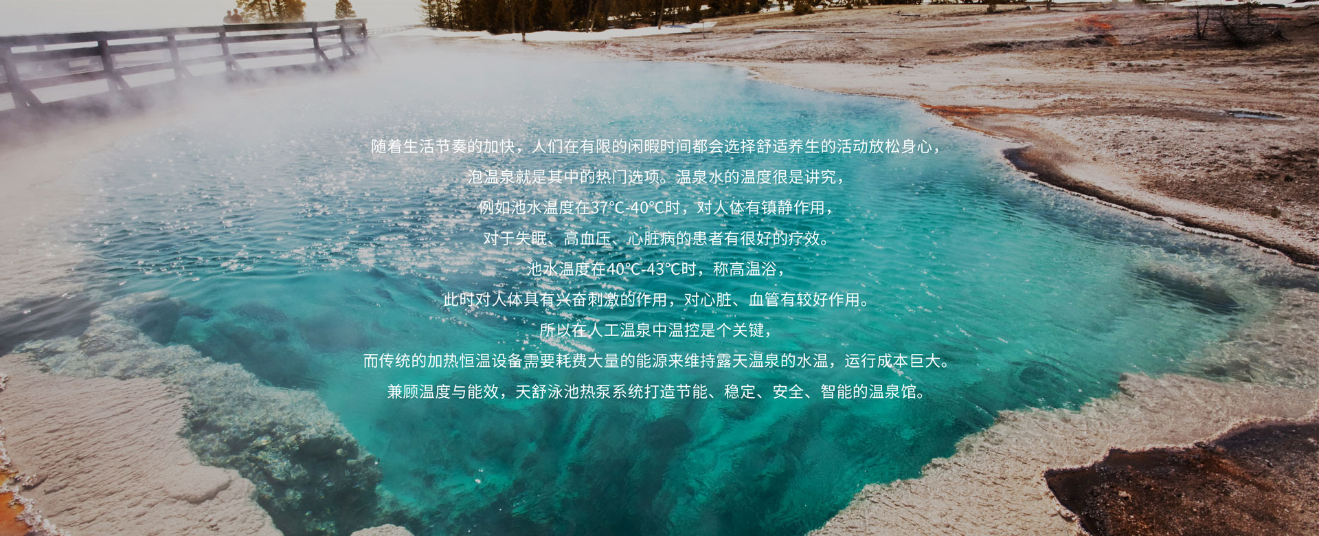 各個溫泉池的溫度要求不同,天舒泳池熱泵系統(tǒng)不僅精準控溫,而且相比傳統(tǒng)加熱方式,節(jié)約大部分運行費用。